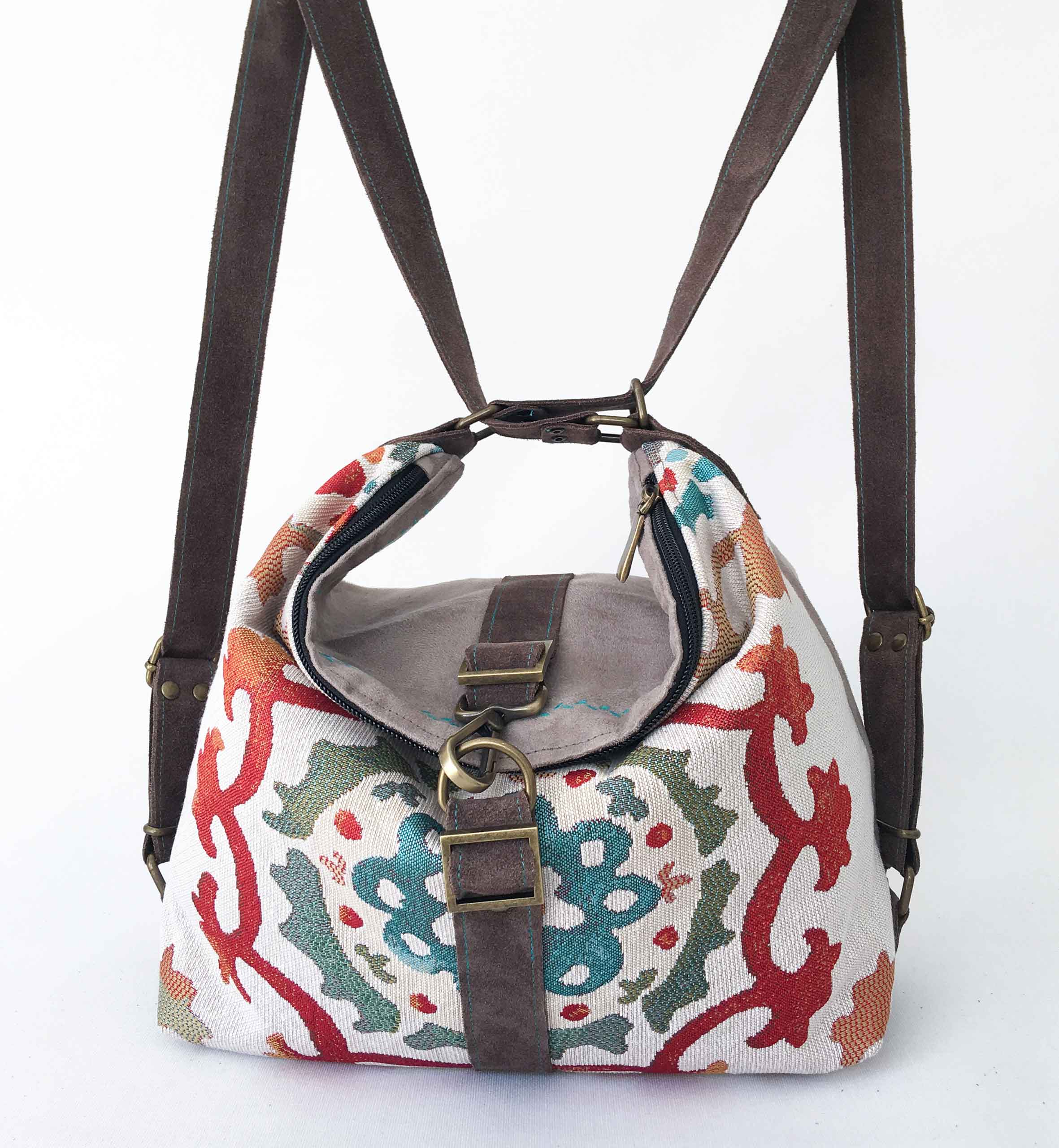 Si deseas una combinación personal de textiles y ante vegano y no lo encuentras en tienda, escríbenos, hablemos y crearemos tu bolso personalizado.