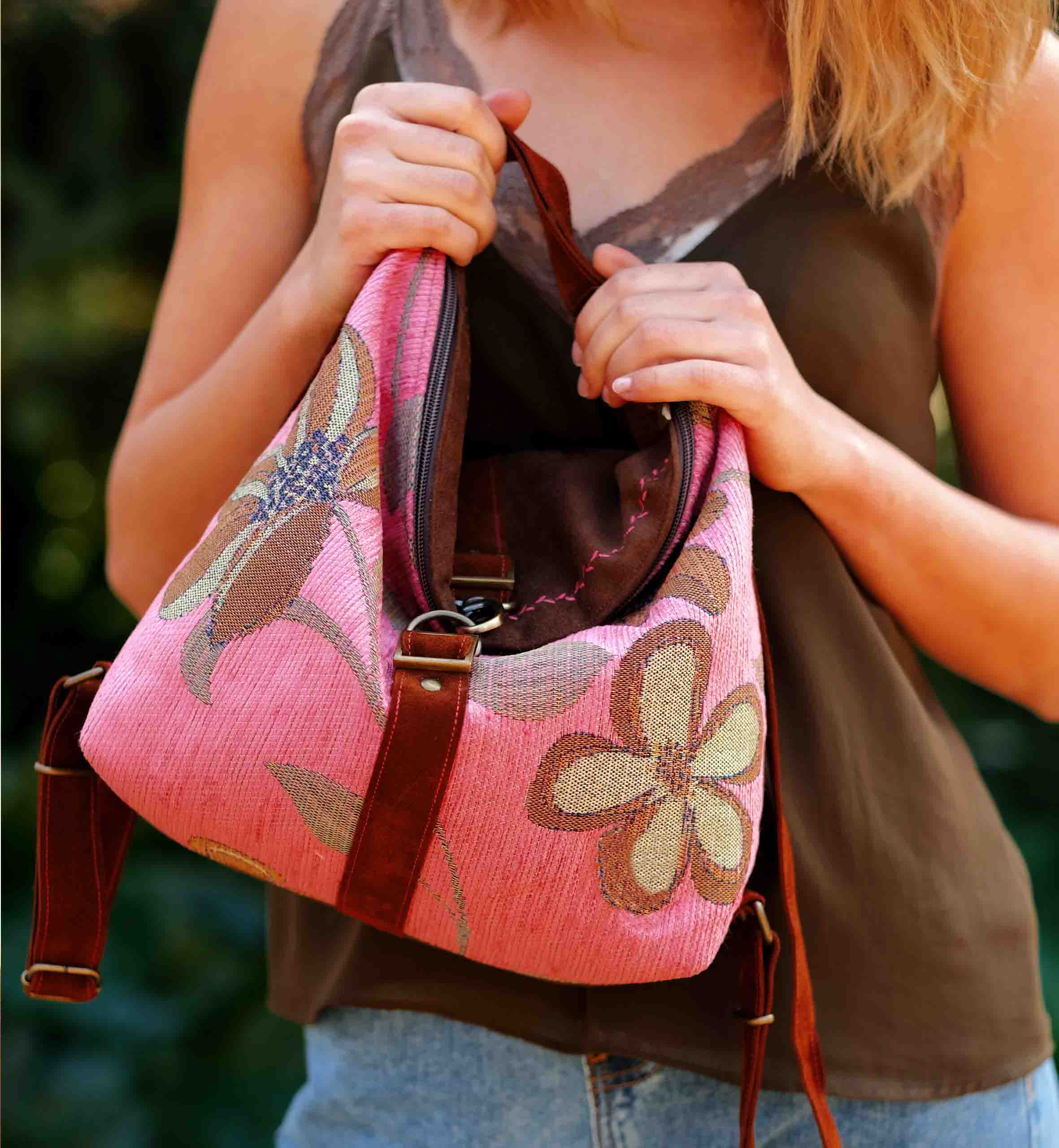 Si deseas una combinación personal de textiles y ante vegano y no lo encuentras en tienda, escríbenos, hablemos y crearemos tu bolso personalizado.